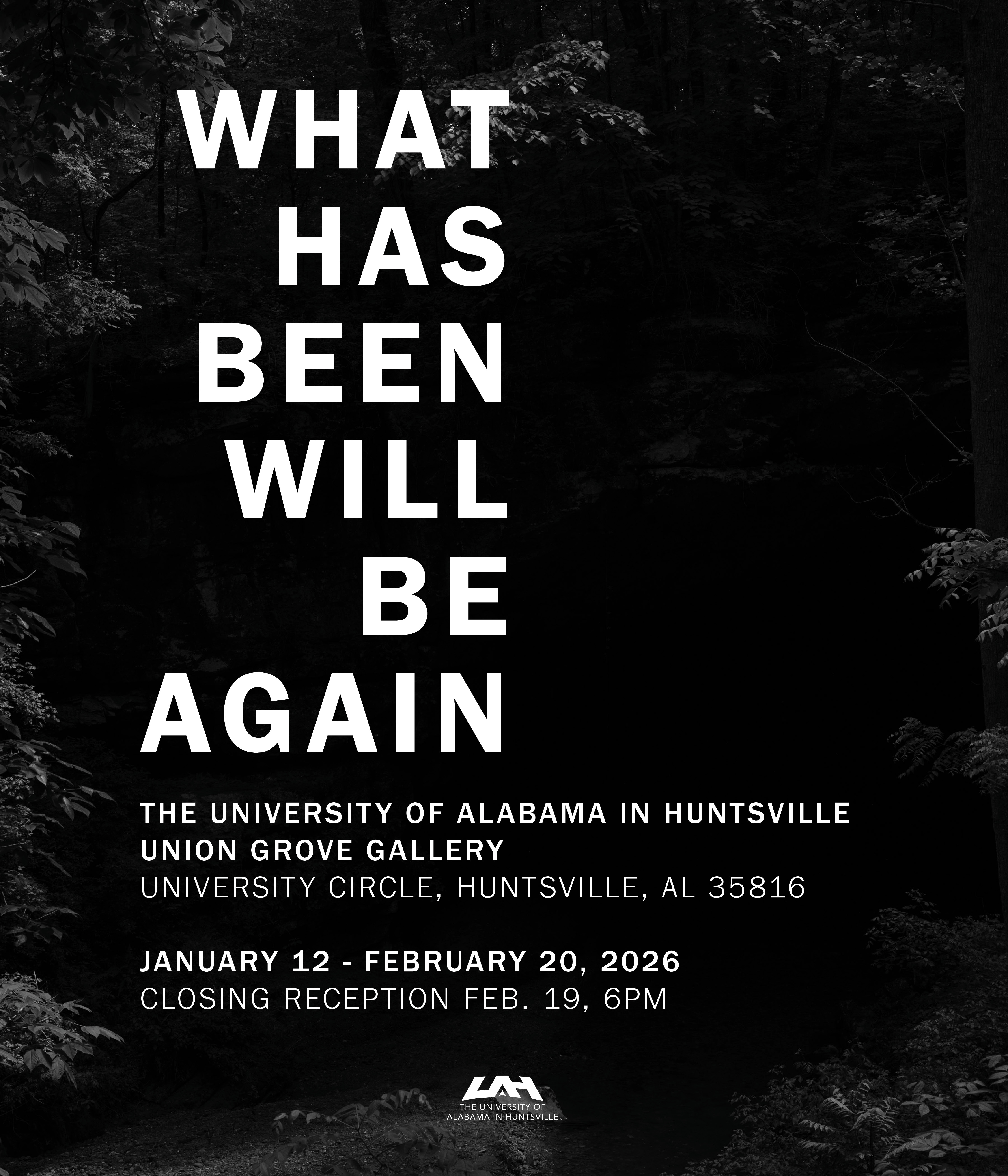 WHAT HAS BEEN WILL BE AGAIN will be on view at the University of Alabama in Huntsville’s Union Grove Gallery, Jan. 12-Feb. 20. A closing reception is scheduled for Feb. 19 at 6pm.